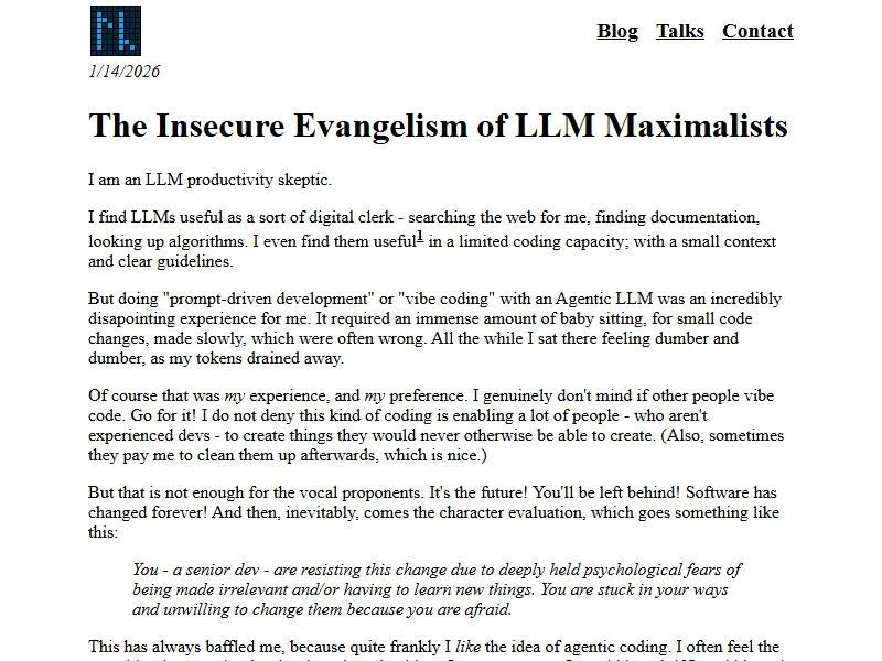 - The Insecure Evangelism of LLM Maximalists - Lewis Campbell
