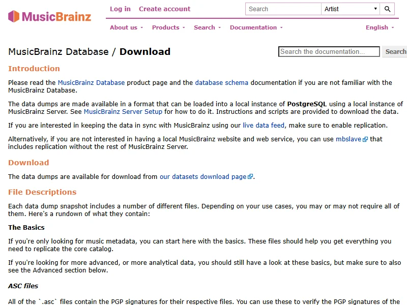 - MusicBrainz Database Download