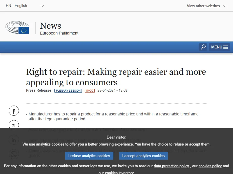 - EU Right to Repair directive - European Parliament