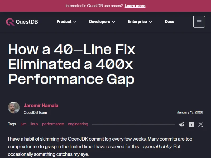 - A 40-Line Fix Eliminated a 400x Performance Gap - QuestDB