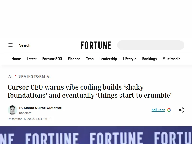- Cursor CEO warns vibe coding builds 'shaky foundations' - Fortune