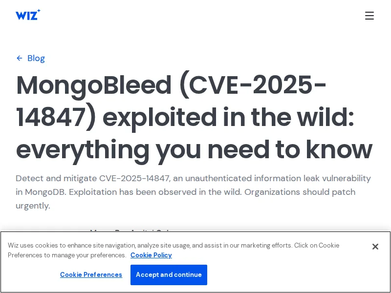 - MongoBleed (CVE-2025-14847) exploited in the wild | Wiz Blog