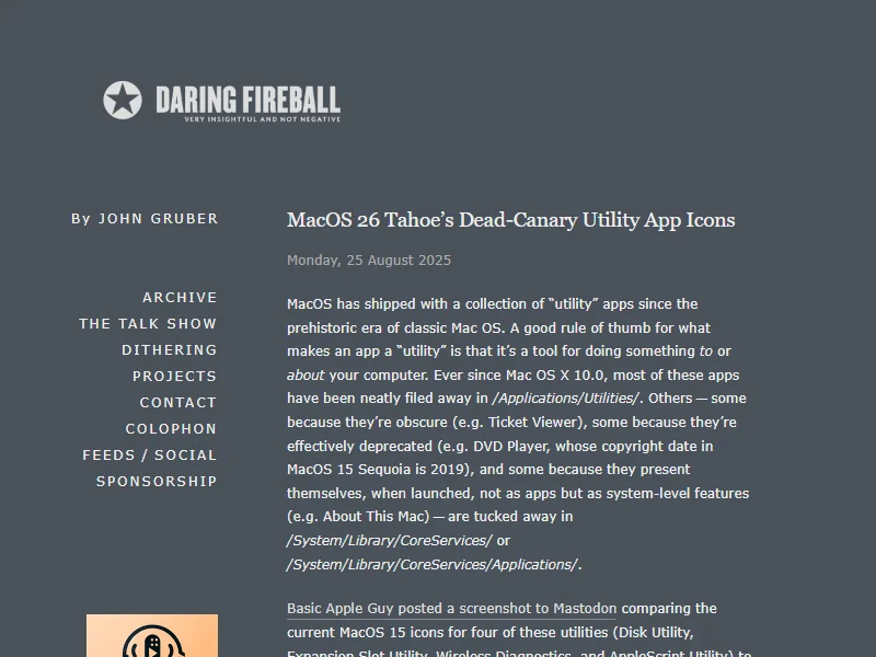 - MacOS 26 Tahoe's Dead-Canary Utility App Icons - Daring Fireball