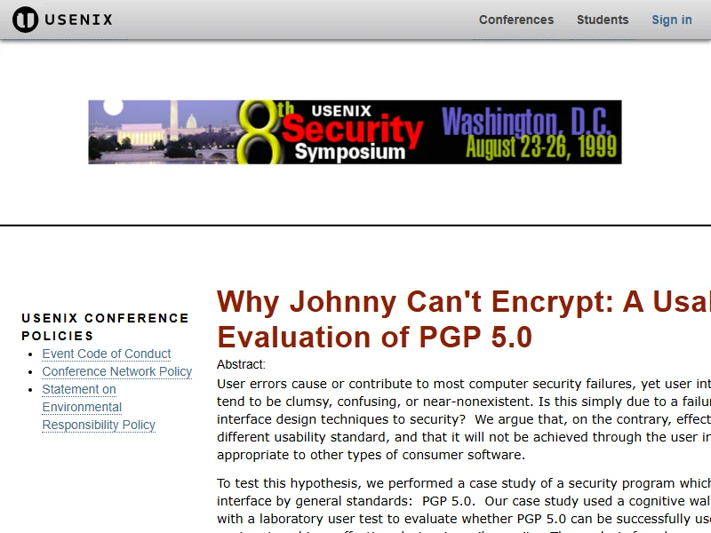 - Why Johnny Can't Encrypt - USENIX