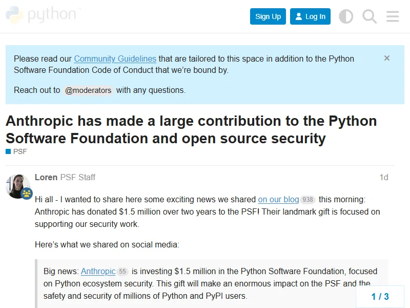 - Anthropic Invests $1.5 Million in the Python Software Foundation